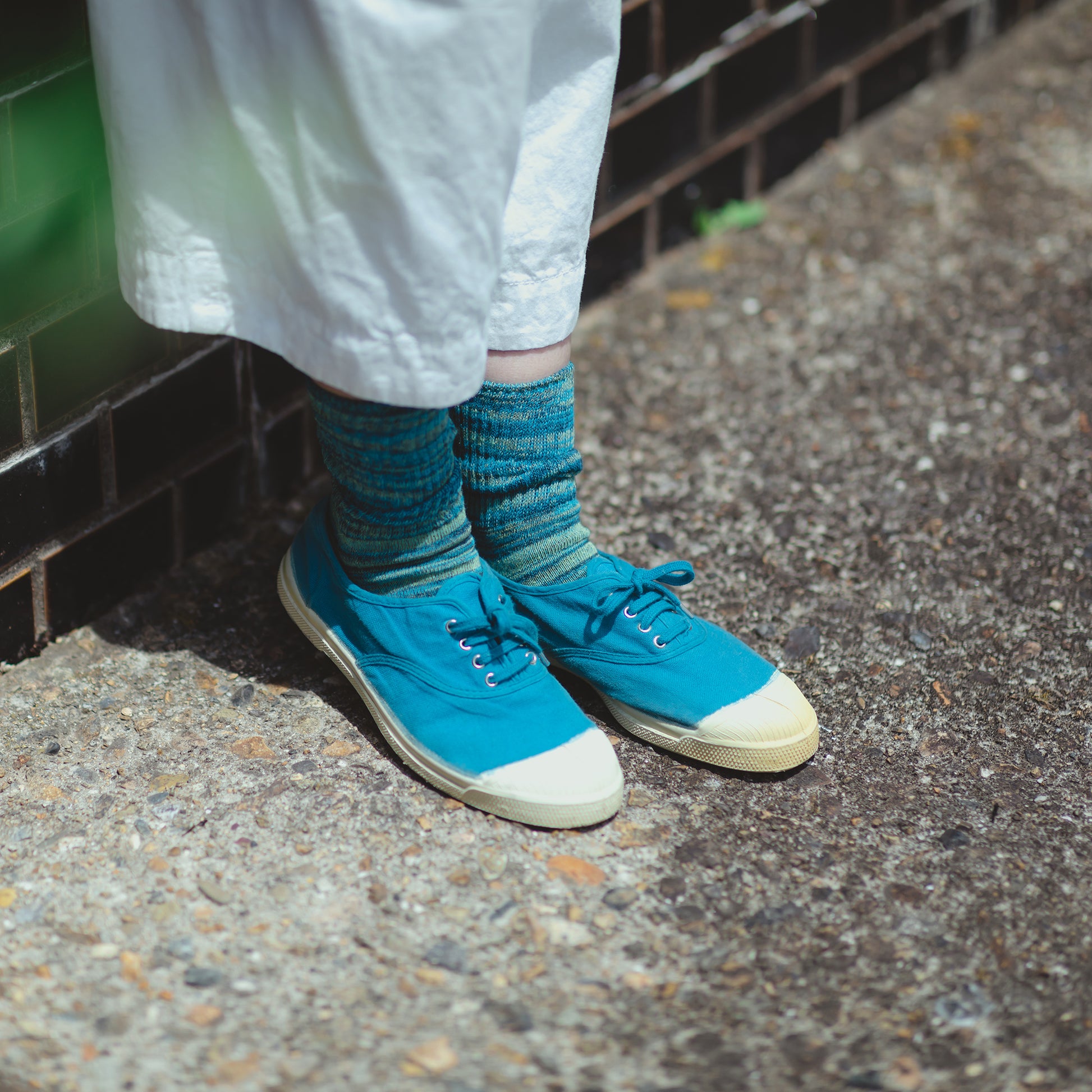 These marble knit cotton-linen socks are made from a lightweight, breathable fabric and are perfect for spring and summer.